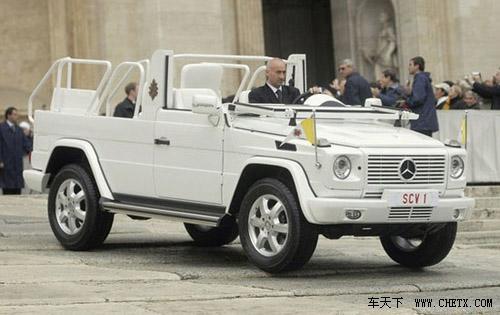 當然,富有的教皇有許多奔馳的車,除G500敞篷外,還有M級、S級特別防護版,而且每一輛都價值不菲。