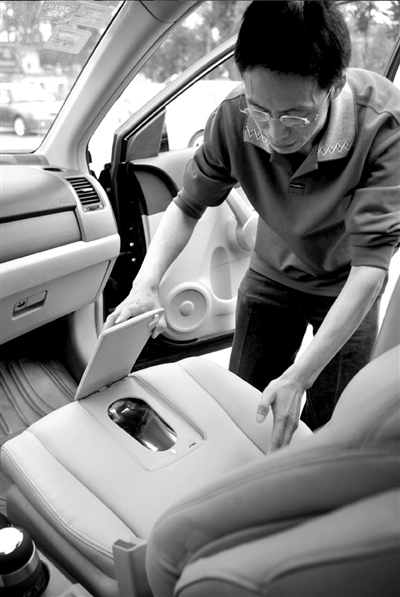 常聯(lián)營說,之前,他經(jīng)常聽到周圍的出租車司機(jī)朋友抱怨駕駛途中如廁難,時(shí)間長了易患腎病,便萌生了發(fā)明車載馬桶的想法。他遇到廁所就進(jìn)去觀看,大量搜集國內(nèi)外相關(guān)信息以后,一個(gè)農(nóng)貿(mào)市場(chǎng)內(nèi)的兒童坐便器讓常先生開了竅,想到將馬桶裝置與車座合而為一的辦法。這輛本田轎車的副駕駛座椅表面留有一個(gè)能活動(dòng)的蓋子,開啟以后隱藏在車座內(nèi)的水槽便顯現(xiàn)出來。使用過后,系統(tǒng)自動(dòng)沖水、凈化、排水。