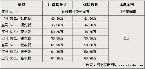 筆者從寶馬北京地區(qū)經(jīng)銷商處了解到,目前寶馬5全系車型只有525和530有現(xiàn)車供應(yīng),消費(fèi)者選購(gòu)現(xiàn)車可以享受2萬(wàn)元左右的優(yōu)惠,優(yōu)惠后5系最低售價(jià)僅為41.36萬(wàn)元。4S店主要有銀色、灰色等款可以挑選,而523需要接受預(yù)訂,同時(shí)新款的寶馬入門級(jí)車型520預(yù)計(jì)于7月份到店,但目前價(jià)格和相關(guān)資料尚未公布。