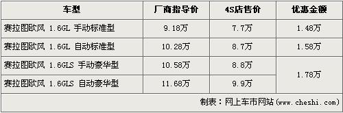 據(jù)經(jīng)銷商處銷售人員介紹,賽拉圖歐風(fēng)全系最高出現(xiàn)1.78萬元的優(yōu)惠。賽拉圖歐風(fēng)在售的有4個(gè)車型,入門級的1.6L手動標(biāo)準(zhǔn)版的優(yōu)惠金額上漲到了1.48萬元,售價(jià)從廠商指導(dǎo)價(jià)9.18萬元降到7.7萬元,1.6L豪華版的手動版和自動版車型都經(jīng)全系最高1.78萬元優(yōu)惠后,售價(jià)分別降至8.8萬元和9.9萬元。銷售人員還介紹,目前賽拉圖歐風(fēng)車型比較緊張,現(xiàn)車數(shù)量一般。