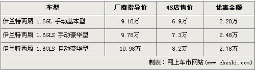 據(jù)經(jīng)銷商處銷售人員介紹,目前購買伊蘭特兩廂的消費(fèi)者還可以得到全系7.5折的優(yōu)惠,入門級車型售價(jià)已經(jīng)不足7萬元,消費(fèi)者購車后必須在店內(nèi)做一條龍服務(wù)。伊蘭特兩廂先已停產(chǎn),現(xiàn)售的車型均為庫存車,并且多家經(jīng)銷店的伊蘭特兩廂庫存車已銷售完,所以很多4S店已經(jīng)不接受此車的預(yù)訂。欲購買此車需交訂金3000元約等一周可提車,若錯(cuò)過這批庫存車,將不會再買到此車型。