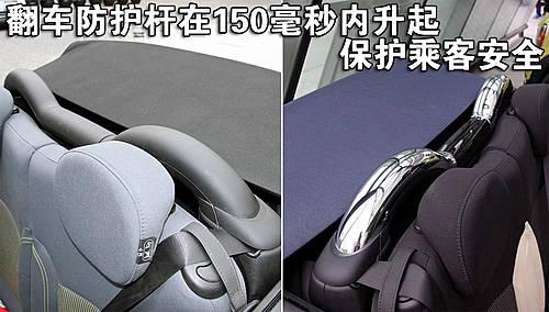 新一代Mini Cooper和Mini Cooper S敞篷版標配機電操控翻車防護桿,其隱蔽在后座椅后面。車內中央安全電子控制系統(tǒng)在車身可能發(fā)生翻滾的150毫秒內,可以迅速升起防護桿,從而保證車內駕乘人員的安全。