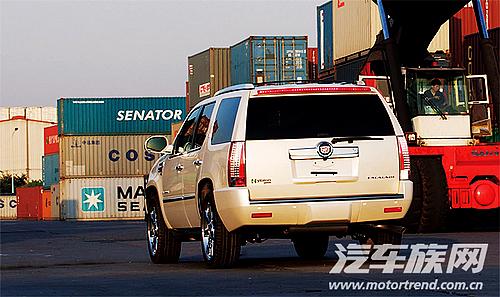 從貨場(chǎng)駛出,一路上被大貨車壓壞的路面坑坑洼洼,這時(shí)MRC主動(dòng)電磁感應(yīng)懸架自動(dòng)調(diào)節(jié)阻尼,高大的車身在顛簸路面上快速前進(jìn),而乘客感到的僅僅是輕微晃動(dòng)。駛離港區(qū),眼前出現(xiàn)筆直的高架公路,輕點(diǎn)油門(mén),車速很快提高到100公里/小時(shí)。這時(shí)從具有AudioPilot噪音補(bǔ)償技術(shù)的Bose音響中流出的音樂(lè)依然保持純凈,并未因?qū)挻蟮能嚿砗?85寬胎所產(chǎn)生的些許噪音而受到影響。此外,可能是靈敏的懸架已經(jīng)自動(dòng)調(diào)高阻尼,美國(guó)車特有的忽忽悠悠的如坐船般的感覺(jué)卻并沒(méi)有出現(xiàn)在我們的凱雷德身上。