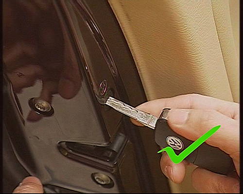 兒童門(mén)鎖開(kāi)關(guān)設(shè)置在車(chē)輛左后、右后車(chē)門(mén)側(cè)壁鎖舌下方。打開(kāi)兒童鎖開(kāi)關(guān)后,車(chē)門(mén)將只能從外側(cè)打開(kāi)。這樣可以防止車(chē)輛行駛中兒童在車(chē)內(nèi)自行打開(kāi)車(chē)門(mén),造成危險(xiǎn)。