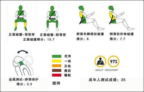 對(duì)于正面碰撞從上面的成績(jī)分析圖來(lái)看,6代高爾夫?qū)τ陬^部胸部的保護(hù)是很出色的,正面碰撞時(shí)駕駛員小腿部分有輕微傷害。側(cè)面碰撞時(shí)對(duì)于胸部和腹部保護(hù)一般,可能會(huì)受傷。對(duì)車輛被追尾時(shí)脖頸的保護(hù)比較出色?傮w成績(jī)看,高爾夫6代在歐洲的測(cè)試中對(duì)與成年人的保護(hù)是比較出色的。