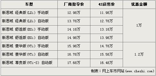 據(jù)東風(fēng)本田經(jīng)銷店銷售人員介紹,目前新思域全系最高優(yōu)惠1.2萬元。新思域分為經(jīng)典版、舒適版、豪華版及尊貴版4種共7款車型。經(jīng)典版和舒適版車型有1萬元的優(yōu)惠,經(jīng)優(yōu)惠后入門級(jí)的經(jīng)典手動(dòng)版售價(jià)從原廠商指導(dǎo)價(jià)12.98萬元降到了11.98萬元。豪華版和尊貴版車型優(yōu)惠1.2萬元,經(jīng)優(yōu)惠后全系最高配的尊貴版車型跌破了17萬元,售價(jià)降到了16.48萬元。銷售人員還介紹,目前全系手動(dòng)版現(xiàn)車緊張,錯(cuò)過店內(nèi)現(xiàn)車的消費(fèi)者需交訂金1千元,本月月中可提車。