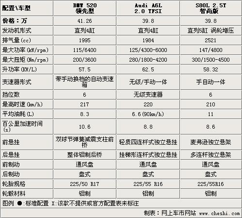 在動力配置方面,沃爾沃S80L入門車款就配備了2.5T發(fā)動機,因此動力性方面會更占優(yōu)勢;而A6L的2.0T引擎兼顧了低排量和高效動力的優(yōu)勢同時也滿足了政府采購的需求;而寶馬新上市的520li僅僅配備了一臺4缸自然進氣引擎,盡管其數(shù)據(jù)在同排量自然進氣引擎中算是出色的了,但是比起另外兩個對手來說動力性上確實有些差距。