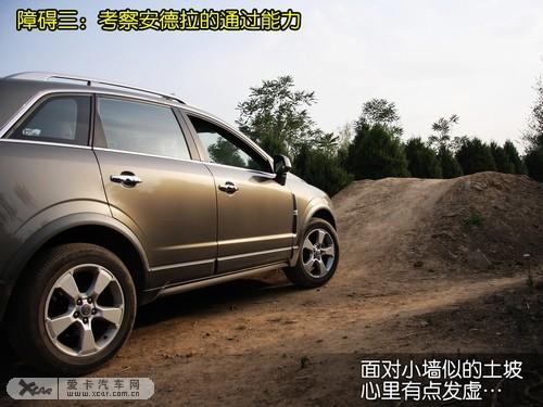 難度逐漸加大,前方陡然出現(xiàn)一座1米多高的土坡,這對(duì)于安德拉的接近角、離去角以及離地間隙將是莫大的考驗(yàn)。擁有24度接近角、23度離去角和18.2度縱向通過角的安德拉,在接近土坡時(shí)還可以從容通過,但是最小200毫米的離地間隙,使安德拉差點(diǎn)止步在此。幸好較為松軟的土坡進(jìn)過一番清理后,使安德拉能夠勉強(qiáng)通過。