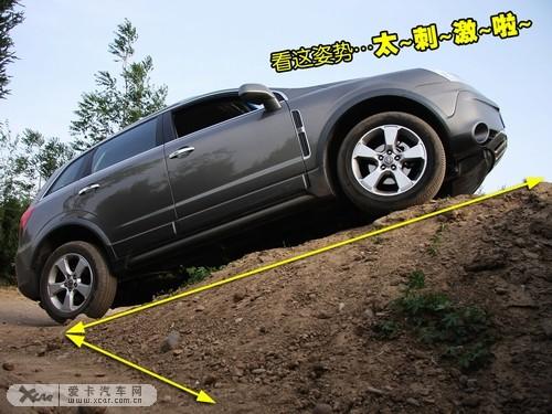 上坡容易下坡難,上坡時(shí)由于車身重心均轉(zhuǎn)移至后方,使上坡時(shí)接近角依然富裕。下坡則是另一番景象,由于車頭向下,車身重心均轉(zhuǎn)移到車頭位置,小心翼翼控制剎車,任何一個(gè)輕微的點(diǎn)頭,都可能減少接近角度數(shù),最終有驚無險(xiǎn)的克服了這一障礙。