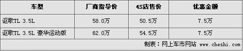 據(jù)4S店銷售人員介紹,目前謳歌TL在原來(lái)車型的基礎(chǔ)上增加了一款豪華運(yùn)動(dòng)版車型,運(yùn)動(dòng)版車型更換為19村外觀輪轂,并增加了擋泥板等套件,售價(jià)為62萬(wàn),F(xiàn)在消費(fèi)者購(gòu)車最高可優(yōu)惠現(xiàn)金7.5萬(wàn)元,優(yōu)惠后售價(jià)最低為50.5萬(wàn)。作為一款豪華運(yùn)動(dòng)型轎車,其在價(jià)格上擁有較大的優(yōu)勢(shì)。目前TL普通版的現(xiàn)車較為齊全,并且有多款內(nèi)飾顏色可供挑選,而運(yùn)動(dòng)版還需預(yù)訂。
