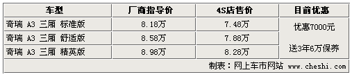 奇瑞A3——現(xiàn)車優(yōu)惠7000元,送3年6萬公里保養(yǎng)