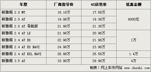 據(jù)4S店銷(xiāo)售人員介紹,目前購(gòu)買(mǎi)新雅閣各款車(chē)優(yōu)惠金額有差別。2.0排量車(chē)型購(gòu)車(chē)可優(yōu)惠現(xiàn)金6000元,優(yōu)惠完車(chē)價(jià)最低為17.58萬(wàn),但這款現(xiàn)車(chē)不多,2.0自動(dòng)檔兩款有黑色、銀色等供應(yīng)。除此之外,2.4排量三款車(chē)優(yōu)惠現(xiàn)金1萬(wàn)元,高配則能給出1.4萬(wàn)優(yōu)惠,3.5排量仍然現(xiàn)車(chē)緊張,需要預(yù)訂。訂車(chē)后仍能享受優(yōu)惠,最高優(yōu)惠4萬(wàn)元。