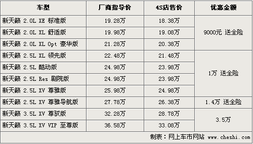 據(jù)4S店銷售人員介紹,目前消費者購買新天籟2.0和2.5排量車型分別贈送價值8000元左右的全車保險,除此之外,現(xiàn)車現(xiàn)金優(yōu)惠從9000元-3.5萬元不等。其中2.0排量現(xiàn)車優(yōu)惠9000元,優(yōu)惠后最低僅售18.38萬,2.5L低配版優(yōu)惠1萬,高端導(dǎo)航版優(yōu)惠1.4萬,3.5排量則最高達到了3.5萬現(xiàn)金優(yōu)惠。目前2.0L和2.5L排量車型有黑色、白色、紫色等現(xiàn)車供應(yīng),但數(shù)量有限,部分車型還需要預(yù)訂。