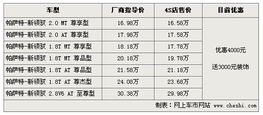 上海大眾帕薩特新領(lǐng)馭-現(xiàn)金優(yōu)惠4000元 再送3000元裝飾