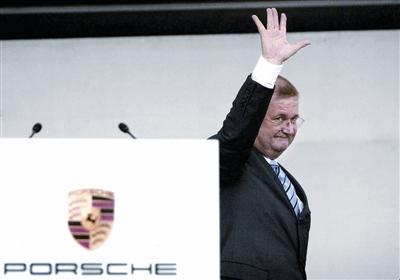 7月23日,在德國斯圖加特的保時捷汽車公司總部,魏德金發(fā)表告別演說后揮手離去。新華社/路透