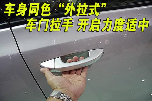 車(chē)門(mén)內(nèi)側(cè)拉手采用鍍鉻設(shè)計(jì),金屬感比較強(qiáng)烈。雖然拉手周?chē)伤芰现瞥,但是拉手周(chē)淖龉ざ己芫?xì)。