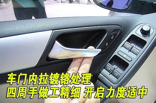第六代高爾夫四只車(chē)門(mén)拉手都噴上了與車(chē)身同色的車(chē)漆,開(kāi)啟車(chē)門(mén)時(shí)發(fā)現(xiàn)車(chē)門(mén)拉手部分做工比較細(xì)致。
