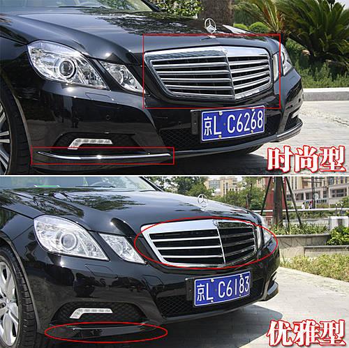 奔馳新E300優(yōu)雅型和時尚型的前臉差異,主要體現(xiàn)進氣格柵和前保險杠設(shè)計上。奔馳新E300優(yōu)雅型前進氣格柵為4鍍鉻橫條設(shè)計,并且在前保險杠LED日間行車燈下配備了鍍鉻飾條。而奔馳新E300時尚型的進氣格柵為3鍍鉻橫條設(shè)計,并且前保險杠采用運動型設(shè)計。