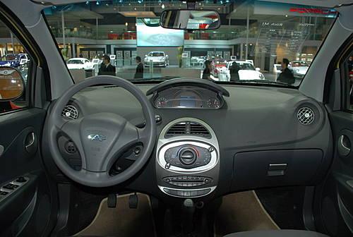 瑞麒M1的中控臺(tái)以深色的設(shè)計(jì)為主,集合了行車信息的多功能儀表盤位于中控臺(tái)中央。而中央控制面板采用銀色的顏色布局,圓潤(rùn)的造型也透出許多可愛的風(fēng)格。瑞麒M1的儀表盤采用中置設(shè)計(jì),并且配備了很多數(shù)字顯示功能。其中包括時(shí)速信息、瞬時(shí)油耗、燃油續(xù)航里程以及保養(yǎng)提示等信息。但轉(zhuǎn)速表、油量表及水溫表都位于兩側(cè),而且表盤較小,看上去有些不太方便。