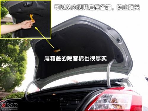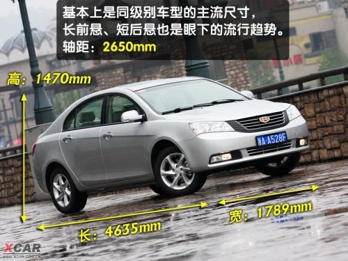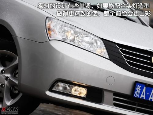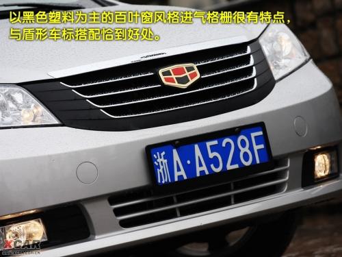 以黑色塑料為主的百葉窗風(fēng)格進(jìn)氣格柵很有特點(diǎn),個(gè)人感覺(jué)和以方塊為基調(diào)的盾形車標(biāo)搭配恰到好處。頭燈和尾燈都是眼下最流行的造型,雖然依稀還有些模仿的影子,但是整體效果不錯(cuò)。如果把帝豪車標(biāo)擋住的話,真的很難想到這是一臺(tái)吉利車。美中不足的是霧燈的設(shè)計(jì)有些單調(diào),如果能配合頭燈造型做得更精致的話,整個(gè)前臉會(huì)更出彩。