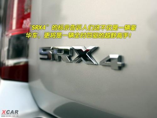 轉(zhuǎn)到車尾,和上一代SRX上的表示不同,尾部立式LED剎車燈旁出現(xiàn)了“SRX4”的標示,“4”的字體比車型代號小了不少,這應該就是新SRX全時四驅(qū)的獨特標志,也告訴人們這不僅是一輛豪華車,更將是一輛全時四驅(qū)的越野高手!