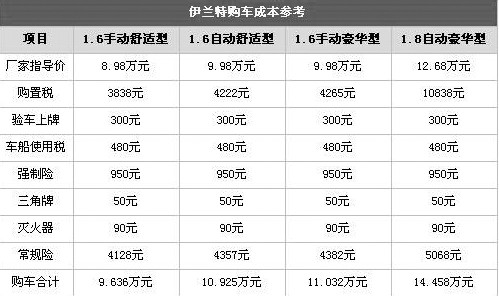 一、購(gòu)車成本,伊蘭特1.6的排量性價(jià)比較好,1.8排量車型不僅購(gòu)置稅沒有優(yōu)惠,而且裸車的費(fèi)用高出1.6很多。其中1.6手動(dòng)舒適型和1.6手動(dòng)豪華型更適合家庭用戶選購(gòu)。