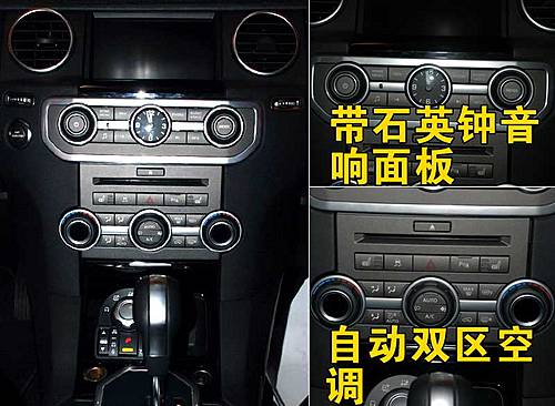 發(fā)現(xiàn)4既然是來自英國的品牌,雖為越野車但英倫的品味不能丟,眾多英國車所標(biāo)配的石英表,它自然不會忽略,小的石英表被鑲嵌在音響面板中,整體美觀中不失高雅,當(dāng)然雙區(qū)自動空調(diào)自然是標(biāo)準(zhǔn)配置。