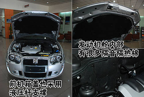 名爵MG 7L的前機(jī)箱蓋也采用了液壓挺桿支撐,開啟絲毫不費(fèi)力氣,發(fā)動機(jī)艙內(nèi)部布局非常整潔,而且機(jī)艙內(nèi)部和機(jī)箱蓋內(nèi)側(cè)有很多隔音隔熱材料。