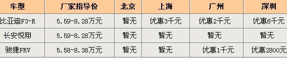 競爭車型:比亞迪F3-R、長安悅翔、駿捷FRV