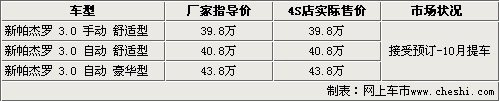 據(jù)三菱汽車4S店銷售人員介紹,帕杰羅3.0L目前已經(jīng)在國內(nèi)正式上市,售價39.8萬元起。目前這款新車在店里還沒有現(xiàn)車,展車預(yù)計會在月底左右抵達展廳,而第一批現(xiàn)車主要以自動豪華型和自動精英型為主,預(yù)計在10月上旬到店。如果現(xiàn)在預(yù)訂新帕杰羅3.0L最快則要等到十月中下旬才能夠提車。目前購買新一代帕杰羅3.0L還沒有任何優(yōu)惠政策,相信等新車批量到店的時候,價格可能會與少許松動。