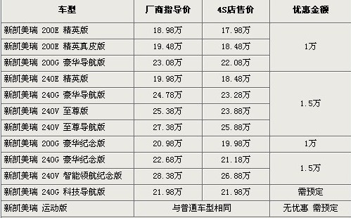 據(jù)4S店銷售人員介紹,凱美瑞在9月份推出了限量版兩款車型,其中包括了運(yùn)動版和紀(jì)念版,運(yùn)動版全系可以免費(fèi)升級運(yùn)動套件。如果夠買這款車的話需要提前預(yù)訂,價格和普通車型相同。車價方面優(yōu)惠幅度在1萬元-1.5萬元之間,入門級車型優(yōu)惠后也跌破了18萬元。