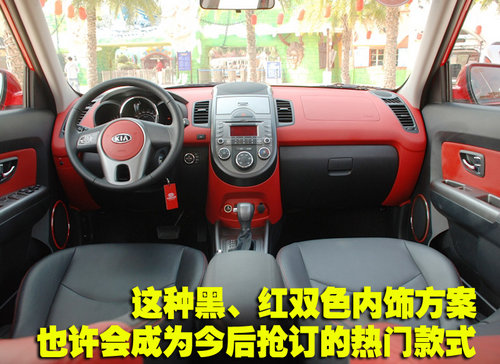 在方向盤也就是駕駛者的周圍分布著很多按鈕,不過別擔(dān)心,再生疏的駕駛者也不會因?yàn)檫@些按鈕或是功能而手忙腳亂,因?yàn)樵O(shè)計師早已經(jīng)為您的日常使用考慮的很周到了。位于儀表臺左側(cè)的三炮筒式儀表盤設(shè)計還算時尚,但是儀表盤的功能并沒有太多新鮮元素的注入,這一點(diǎn)也是因?yàn)槌杀镜目紤]而不得不落入俗套。中控臺左側(cè)下方是控制大燈高度的調(diào)節(jié)按鈕,右側(cè)的控制鈕是SOUL的最大特點(diǎn),即控制前車門揚(yáng)聲器發(fā)光的開關(guān),它可以跟隨音樂節(jié)奏變換紅色燈光的閃爍,如同將迪廳的燈光帶入了車內(nèi)。