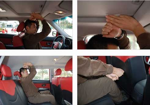 一臺(tái)不足4.1米軸距2.55米的小車內(nèi)部空間如何?上面既是答案。模特身高1.75米左右,在他與駕駛席正常的駕駛坐姿下,后排空間同樣可以坐下身高在1.75米左右的成員,而且空間仍然有一拳以上,前后排頭部的空間也因?yàn)檩^高的車頂設(shè)計(jì)而得到擴(kuò)大,完全不會(huì)感覺到乘坐不適。