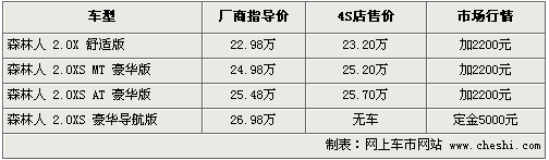 據(jù)斯巴魯4S店銷售人員介紹,目前森林人全系店內(nèi)的實際銷售價格比原來指導(dǎo)價增加了2248元,主要原因是全系增加了倒車雷達以及尾喉配置。目前2.0XS自動導(dǎo)航版和2.5XS兩款車型均有現(xiàn)車供應(yīng),顏色主要為藍色、白色、紅色、黑色。部分顏色及車型還需要預(yù)訂,訂金為5000元,最快一個月可以提到車。另據(jù)介紹,2.0XS豪華導(dǎo)航版已停止生產(chǎn)。北京地區(qū)各4S店由于訂單不同,各店銷售的現(xiàn)車顏色有所不同。