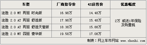 據(jù)北京現(xiàn)代北京地區(qū)4S店銷售人員介紹,途勝車型優(yōu)惠現(xiàn)金2萬元或贈(zèng)送購置稅及全年保險(xiǎn),兩項(xiàng)優(yōu)惠只能選擇其一。目前店內(nèi)現(xiàn)車供應(yīng)主要為銀色、黑色為主,四驅(qū)部分車型需要預(yù)訂,訂金5千元,一周左右時(shí)間可以提車。如消費(fèi)者有意購買,到店詳談會(huì)有更優(yōu)惠的價(jià)格。北京地區(qū)各4S店由于訂單不同,各店銷售的現(xiàn)車顏色有所不同。