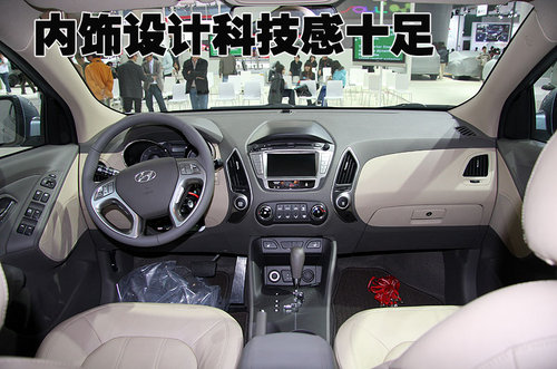 現(xiàn)代ix35的內(nèi)飾設(shè)計極具動感,黑色的中控臺只搭配了少量的銀色飾條十分醒目,而四幅式的方向盤經(jīng)過銀色飾條的裝扮,也顯得別具一格,紅色真皮座椅一般之后再運動風(fēng)格濃厚的車型上才見到。