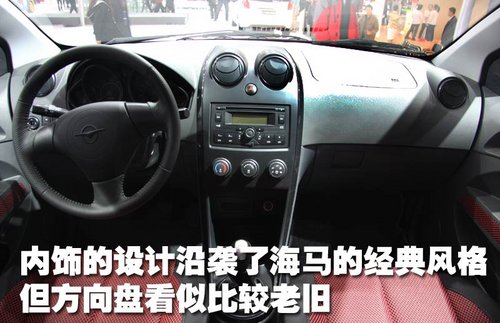 海馬丘比特的內(nèi)飾設(shè)計(jì)沿襲了海馬汽車(chē)的經(jīng)典造型風(fēng)格,采用深灰色內(nèi)飾顏色布局,整體來(lái)看比較典雅大方,但方向盤(pán)的設(shè)計(jì)看似比較老舊。