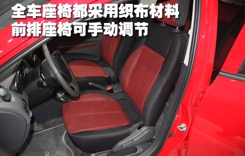 海馬丘比特的全車(chē)座椅都采用織布材料,但大部門(mén)面料都采用紅色織網(wǎng)樣式,使整車(chē)看上去運(yùn)動(dòng)氣息十足,而且座椅兩側(cè)對(duì)身體的包括也比較到位。前排座椅采用手動(dòng)調(diào)節(jié)方式,但不能夠高低調(diào)節(jié)。