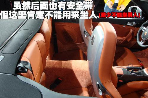 2010款保時捷911 Turbo敞篷版前排座椅為一體式運(yùn)動型座椅,支撐有力且皮質(zhì)手感舒適。除座椅下方的電動調(diào)節(jié)按鈕外,在椅背側(cè)面還設(shè)計了手動扳手,從而方面后排乘客上下車。由于雙后座受到流線車體縮減的局促空間,并不適合體型略壯碩的成人長途乘坐。