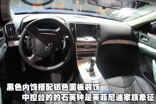 內(nèi)飾的風格依然保持了英菲尼度家族式的風格,中控臺中央的石英鐘無疑就是它典型的的家族特征。黑色內(nèi)飾搭配銀色面板裝飾,沉穩(wěn)中不失活力。