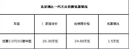 6、大眾邁騰2.0T優(yōu)惠1.5萬