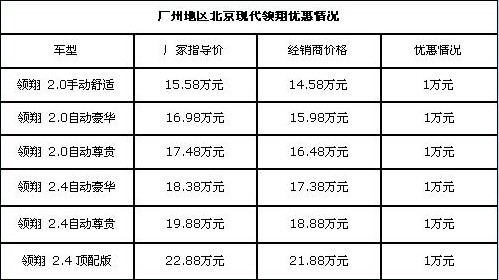 筆者從廣州北京現(xiàn)代4S店獲悉,近期領(lǐng)翔車型能有10000元的現(xiàn)金優(yōu)惠,不過(guò)經(jīng)銷商處的現(xiàn)車都不多,大多數(shù)車型都需要預(yù)訂,訂車周期預(yù)計(jì)要15-20個(gè)工作日。