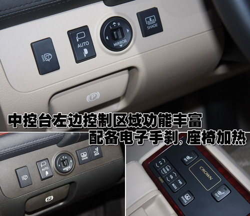 新皇冠的中控臺(tái)按鈕的設(shè)計(jì)均勻的布局在顯示屏四周,下方為隱藏式CD設(shè)計(jì)。整體的風(fēng)格上顯得過(guò)于沉穩(wěn)而顯得活力不足。同時(shí)裝配的HDD硬盤(pán)式導(dǎo)航系統(tǒng)等多項(xiàng)高端配置為消費(fèi)者提供了更多的尊貴享受。