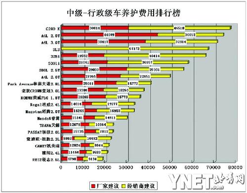 軸距在2700mm至2850mm的為中級車,超過2850mm的為行政級車。排行榜中的二十款中級、行政車養(yǎng)護費用顯示:日系品牌車型的保養(yǎng)價格較低。豪華品牌的車主不僅有權(quán)利享受到各種專屬服務(wù)。它們的愛車也得到更好的維護——喝的是純合成機油,用的是白金的火花塞……