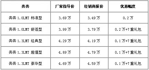 長(zhǎng)安奔奔最高可優(yōu)惠2000元 再送7重大禮
