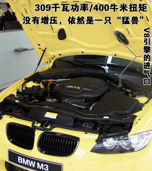 M3的底盤設(shè)計(jì)理念和超級(jí)跑車還是有所不同,它的車底離地間隙雖然比普通寶馬轎車低了一些,但是底盤設(shè)計(jì)型式是標(biāo)準(zhǔn)的寶馬模式;前短前懸、前置發(fā)動(dòng)機(jī)后輪驅(qū)動(dòng)、長(zhǎng)軸距和50:50的前后軸質(zhì)量分配。駕駛座椅非常具有運(yùn)動(dòng)風(fēng)格,但是真皮的包裹還是表明它并不是為比賽而準(zhǔn)備的。這種差別在追求賽車感覺的同時(shí),也考慮行駛的舒適性,這正是寶馬的運(yùn)動(dòng)理念,和GT公路跑車的設(shè)計(jì)理念有些接近。