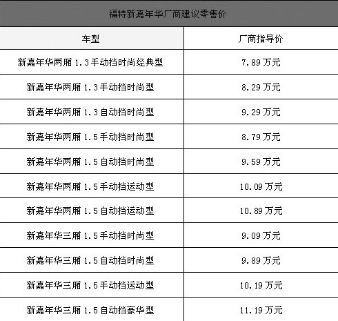 2009年3月6日,長(zhǎng)安福特正式宣布,福特新嘉年華正式在國(guó)內(nèi)上市,先期上市的兩廂和三廂共11款車型價(jià)格從7.89-11.19萬(wàn)元,從即日起,消費(fèi)者就可以到長(zhǎng)安福特授權(quán)福特品牌經(jīng)銷商處預(yù)訂新嘉年華。