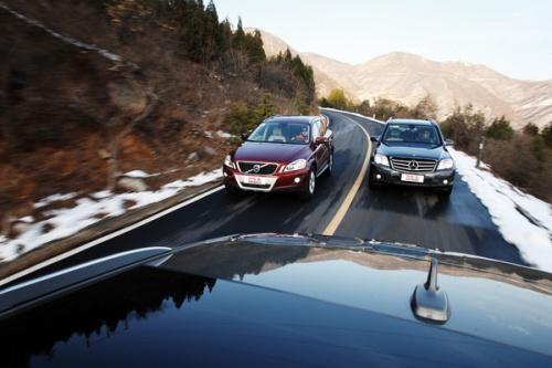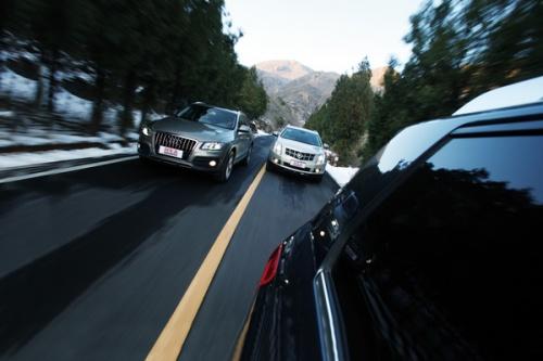 所有4款車都配備了3.0升以上的V6發(fā)動(dòng)機(jī),這意味著所有4位選手理論上都擁有不錯(cuò)的動(dòng)力表現(xiàn)。其中XC60還配備了一套雙渦輪增壓裝置。所以沃爾沃在力量方面占有先天優(yōu)勢(shì)。雖然280馬力最大功率并沒有比奔馳和奧迪領(lǐng)先多少(Q5為270馬力,GLK則是272馬力),但從1500轉(zhuǎn)一直能維持到4800轉(zhuǎn)的400!っ鬃畲笈ぞ?zé)o疑讓它的中段加速力顯得尤其突出。寬泛的扭矩輸出帶還掩蓋了6速自動(dòng)變速器反應(yīng)欠敏捷的缺陷。但即使如此,變速器在普通模式下完成降檔提速的頓挫依然有點(diǎn)兒明顯。所以在城市高速路上跟著SRX一路殺向拍攝地點(diǎn)時(shí),我一直都保持在手動(dòng)模式。將速度維持在60-120之間,我需要做的只是在響應(yīng)敏捷的4檔和5檔之間來回切換,巨大的低轉(zhuǎn)扭矩讓提速變得很容易,所以在那些按常理需要使用3檔的地方也可以維持在4檔,稍微多給一點(diǎn)兒油,問題就解決了。