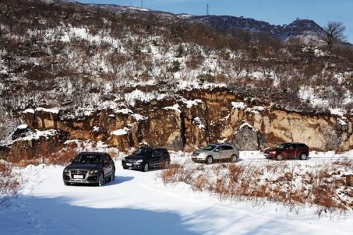 然后需要集中說(shuō)明的是它們?cè)谘┑刂械谋憩F(xiàn)。我們?cè)谝粭l被積雪完全覆蓋的道路上駕駛了好一會(huì)兒,經(jīng)過(guò)反復(fù)的比較,我發(fā)覺(jué)XC60和SRX的表現(xiàn)幾乎相差無(wú)幾,兩輛車在抓地力方面不存在什么明顯的問(wèn)題,最多只是在起步和停車時(shí)會(huì)發(fā)生一些打滑,它們最主要的問(wèn)題是方向盤(pán)在這種情況下會(huì)完全喪失路感,這讓人在駕駛時(shí)不免感到戰(zhàn)戰(zhàn)兢兢。Q5的情況要比前面提到的兩臺(tái)車稍好一些,但一旦稍微快一些就會(huì)讓人產(chǎn)生信心不足的感覺(jué),在同樣的條件下quattro發(fā)生打滑的次數(shù)明顯較SRX和XC60來(lái)得少。GLK無(wú)疑是在這種路面上表現(xiàn)最杰出的車型,在普通道路上略顯閑散的方向盤(pán)在這種路面上卻能得到充分的信息反饋,而且GLK是唯一在這種路面能讓人放心給油快速前行的車輛,所以GLK無(wú)疑是在低牽引力條件的路面上表現(xiàn)最好的車型。