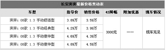 長安奔奔1.0標(biāo)準(zhǔn)版標(biāo)配同色后視鏡、同色防擦條、外接音源接口、前后霧燈和手動空調(diào)等基礎(chǔ)配置;1.3手動舒適版在此基礎(chǔ)上增加了駕駛室安全氣囊和中空鑰匙等配置;經(jīng)典版在舒適版基礎(chǔ)上增加了副駕駛座安全氣囊、遙控鑰匙、鋁合金輪轂以及遮陽板化妝鏡等裝置;豪華版在經(jīng)典版基礎(chǔ)上增加了單碟CD和前后電動車窗等配置;超值版在豪華版基礎(chǔ)上增加了ABS/EBD以及發(fā)動機(jī)電子防盜系統(tǒng)。